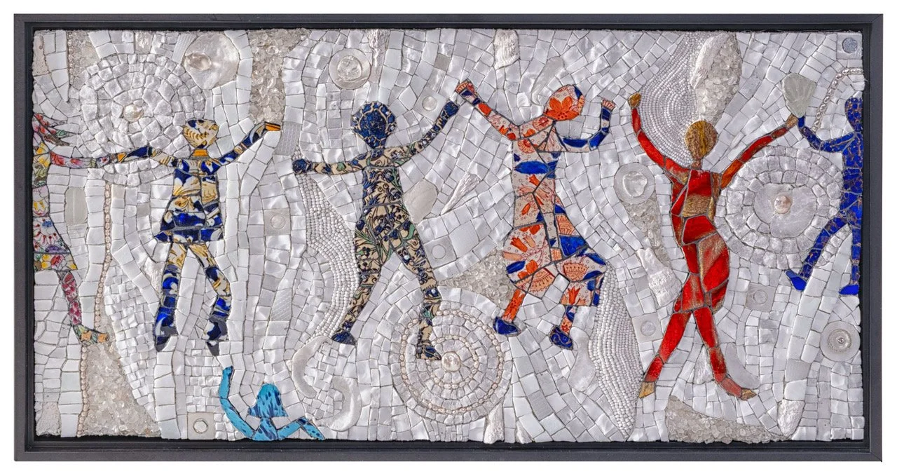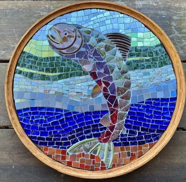 A mosaic can be defined as an artistic picture or design produced by arranging small pieces of material such as tiles or stone. Traditional mosaics are made of small, flat, roughly square pieces of stone or glass of different colours, known as tesserae. But contemporary mosaics can be made of anything!
